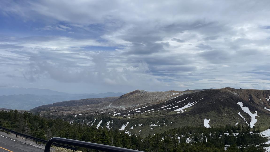 湯釜が正面に望める駐車場