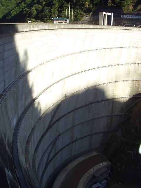 さて、出発して次期に狭いトンネルが連続しだす。まだ早朝ということもあり涼しく、そして車通りも少なく走りやすい。すぐに弧を描いたダム、奈川渡ダムへ到着。ここは無料見学でき、エレベーターで150m下って発電機を見学できるらしい。それに惹かれたが、開館が9時半からと遅かった。かなり迷ったが、あきらめて先へ進むことにした。朝のうちにトンネル群を越えて、坂を上っていきたいからだ。