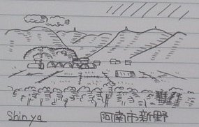 こうして、初めてのイラストを描いて下山へと向かった。下山は上りに比べればあっという間である。そして下山後、ある元気なお遍路さんと会う。正確には再会だ。会うのはもうこれで3度目なのである。いろいろお話を聞くと、なんと68歳という年齢にも関わらず、徒歩&野宿でずっと旅を続けているという元気なおじいちゃんだった。そしてやっぱり食事にも困っているということで、自分が持っていた、みかんとチョコをお接待♪そんな接待することが嬉しかった。書き終えた頃、車から話しかけて方が。名前は”新居”さん、自転車のプレートを見て声をかけてくれたそうで、そしてなんと、餞別を・・・ ありがとうございます♪そしていろいろお話を伺うと、ちょっと変わった仕事をしていて、それに興味をもち、ちょっとお伺いさせてもらえることに・・・ のんびりした気持ちがこういうことに繋がって嬉しい。県道35号線を相生町方面に上っていくと、例の”新居バイオ花き研究所”という会社を発見!さっそく伺い、いろいろ話を聞かせて頂いた。仕事は植物のクローンを作る仕事。そしてその会社内はまさに研究所という雰囲気。異質な世界でびっくりした。そして、またこの四国の歴史についてもいろいろ教えてくれた。また、そんな話が楽しくすっかり時間を忘れて話し込んでしまい、それでも時間が迫り、後ろ髪引かれる思いで後にしたのは14時過ぎ、最後にお土産まで頂いて再出発した。ちなみに、がんばっている人が好きといって声をかけてくれたのだが、そんな新居さんこそが、がんばっていて、そしてやっぱり輝いていた。そんな人になりたい。