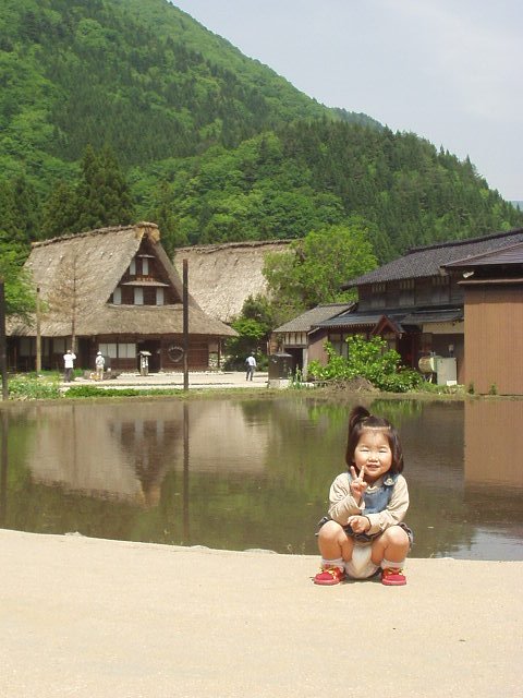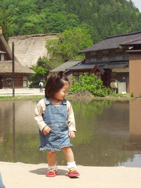 さらにこのあと戻るように南下してもっとも合掌造りで有名な白川郷へと足をさらに伸ばした。さすがにこちらは先ほどとは一変、大型バスで込み合い人が溢れていた。さすがは世界遺産の観光地と思わせられざるえない風景で、静かな五箇山に比べるとただのレジャー施設のように見えてしまう。そんなこともあって、合掌村への入園はあきらめ、ここはお土産街などの町並みを散策することにした。それでも充分に楽しめ、逆に先ほどにも書いたがどこも生活そのままの姿でいて、それが風情を高めていた。