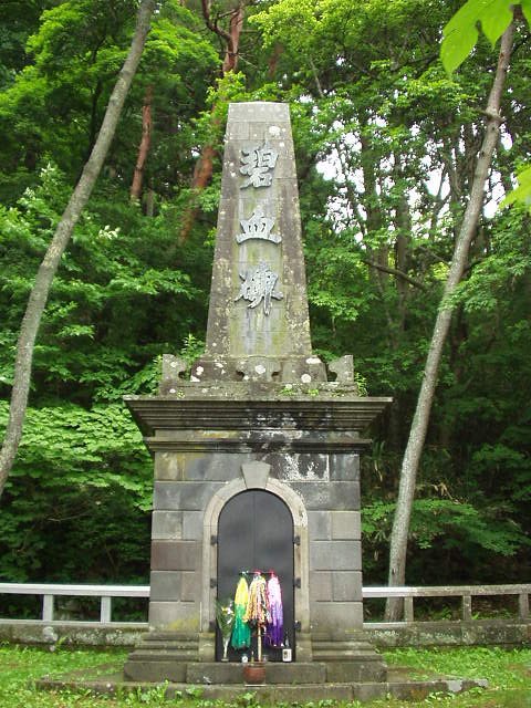坂を必死で翔け上ってお次は護国神社。ここには戊辰戦争・官軍の墓を見学し、そして護国神社、旧函館市博物館も観光。さあ、まだまだ続くぞ!お次は函館八幡宮を参拝して、そして、その神社からさらに奥へと上り、最後はうっそうとした緑生い茂る階段を登っていきと幕軍の墓”碧血碑”。お次は海沿いを快走に抜けて行き、東の岬である溶岩で作られた断崖絶壁の立待岬へと到達した。